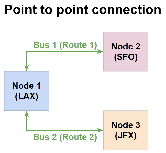 Having one bus assigned for each connection makes the design very inflexible: Say during execution, two nodes in your chip need to transfer more data than two other nodes, they both still have similar buses with the same bandwidth. It’s like operating an empty flight from LAX to JFK, even though the LAX-SFO route is overbooked!
